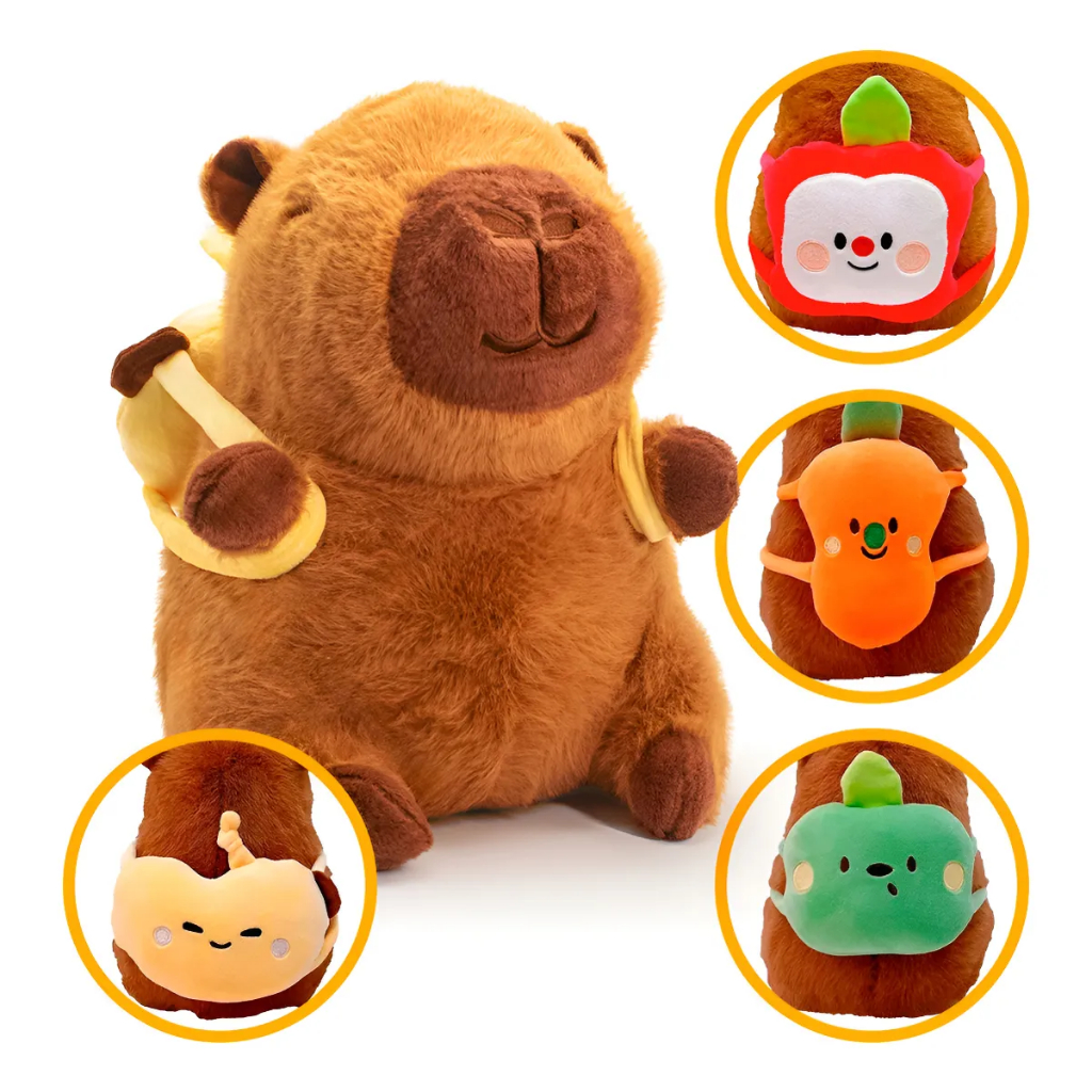 Conteúdo da Embalagem: 1 boneco de pelúcia capivara + 1 mochilinha decorativa