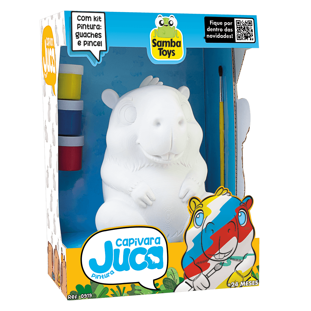 Estimule a criatividade com o Juca Capivara Pintura 0919 da Samba Toys! Este kit artístico vem com uma capivara de vinil atóxico pronta para ganhar cor com tintas guache (3 potinhos) e pincel. O brinquedo é certificado e aprovado pelo INMETRO (Registro 009994/2022), garantindo segurança para crianças a partir de 24 meses. Com dimensões de aproximadamente 15,0 × 12,5 × 10,0 cm, o produto é ideal para desenvolvimento motor, percepção artística e momentos divertidos em casa. Instruções básicas de uso e garantia contra defeitos de fabricação inclusas.